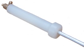 The tube has small holes down its length and is made from aluminium. A brass valve at the top of the tube allows connection to a gas analyser. |